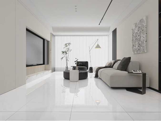 突破傳統瓷磚的二維表達,以三層納米釉料+全拋釉工藝,構築立體光感矩陣,經1280度高溫淬煉,凝結98度水晶光感,讓釉麵在