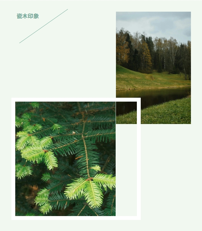 以大麵積留白為背景色,配以原木色作搭配,柔和的低飽和度色係,讓色彩搭配更和諧亦更有層次感。